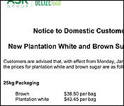 Servulo Baeza, CEO, Ministry of Agriculture "We had a control price for brown sugar and plantation white, a retail control price. That's all we had. So the retail price for brown sugar was 39 cents and the retail price for plantation white was 75 cents."